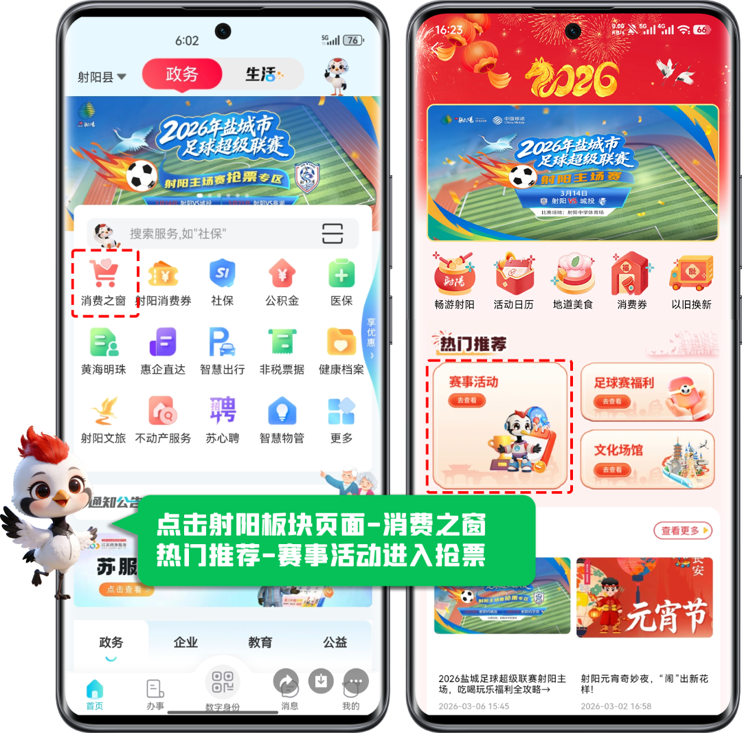 (2)登录“我的盐城”APP ,进入射阳板块→消费之窗→赛事活动(如图所示);