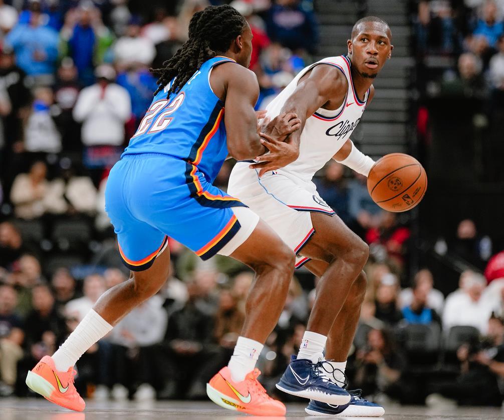 4月9日NBA常规赛——洛杉矶快船主场迎战俄克拉荷马雷霆!目前雷霆63胜16负排西部第一领先马刺3个胜场,除非最后三场比赛全部输球且马刺全部赢球才能丢掉第一的位置,这基本很难发生!快船这边目前41胜38负排在西部第八,落后太阳两个胜场领先开拓者一个胜场,想要升至第七需要争取3连胜收官且太阳连续输球,对于快船来说剩余3场比赛的任务就是保8争7!回到本场比赛此役是双方本赛季的第三次交手,前2次对决雷霆都大比分赢球,不过前两次交手都发生在赛季初期快船状态最差的阶段!本场比赛快船这边加兰不打,泰伦卢派出伦纳德、科林斯、洛佩斯、琼斯、邓恩的先发阵容,雷霆这边全阵容出战,戴格诺特沿用杰伦·威廉姆斯、霍姆格伦、哈尔滕施泰因、多特、亚历山大的常规先发。小卡与SGA、以及双方内线的争夺将是本场比赛最大看点。